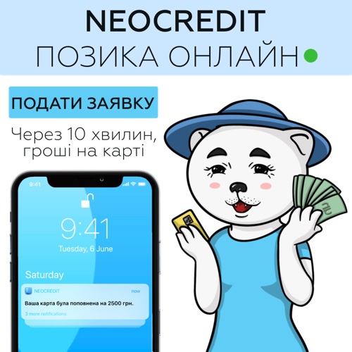 Деятельность ООО "ФК "КОМБИ" (TM Neocredit) регулируется Национальным Банком Украины и действующим законодательством Украины. Общество включено в Государственный реестр финансовых учреждений и имеет лицензию на кредитование.